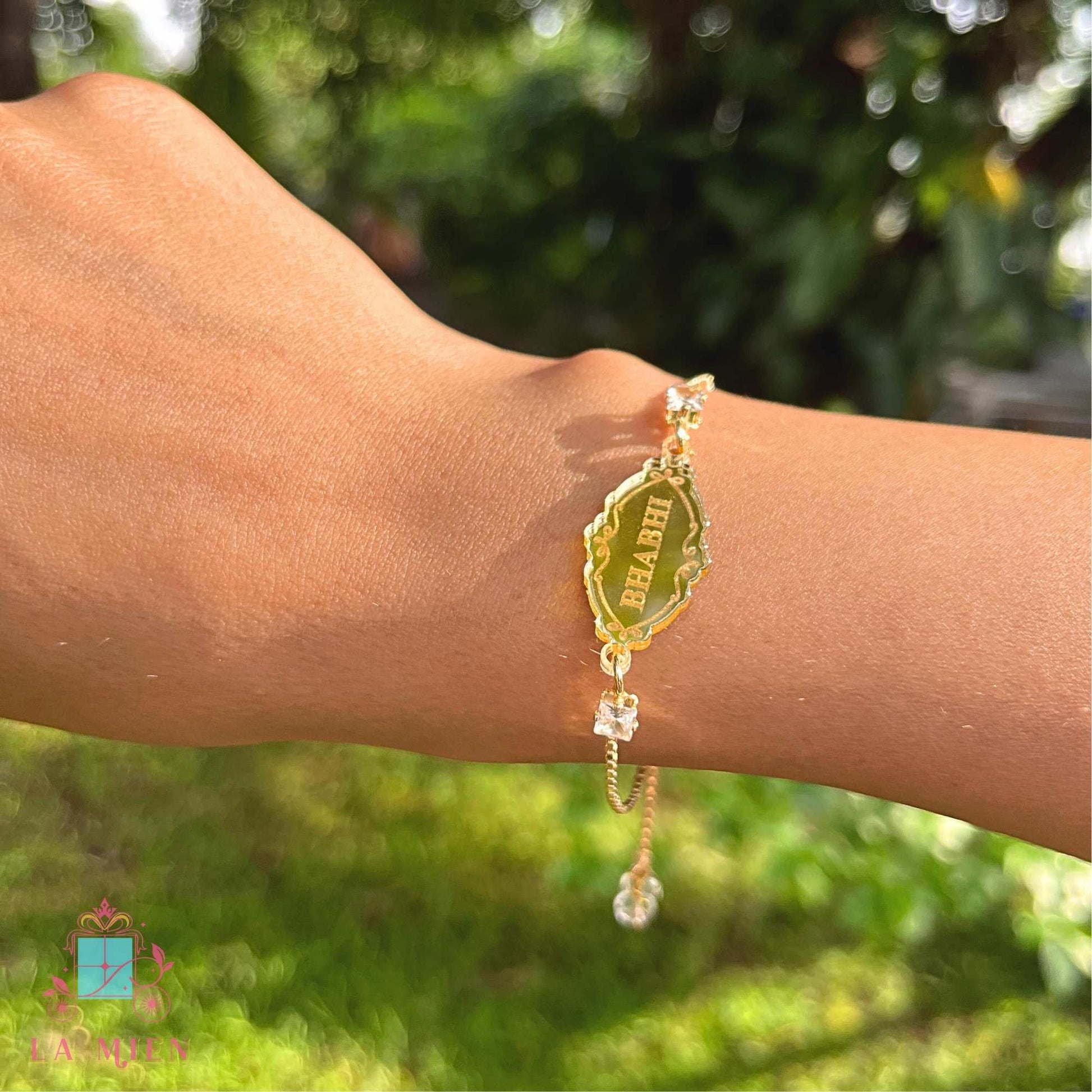This Raksha Bandhan, celebrate the beautiful bond with your bhabhi (sister-in-law) through elegance and love. Our "BHABHI" Rakhi features a stunning gold-finish acrylic charm paired with a sleek golden chain—designed to double as a stylish bracelet she can wear beyond the festival.