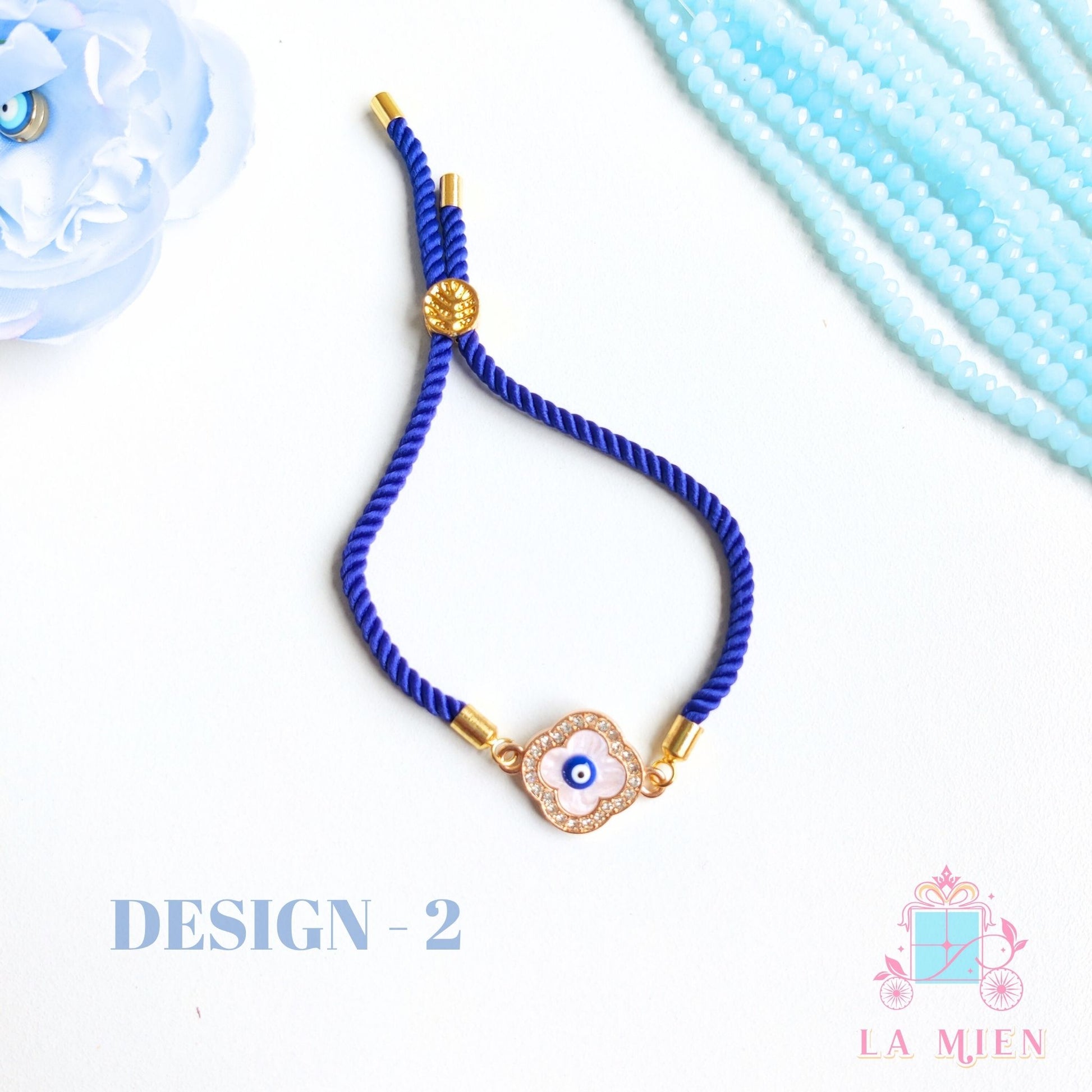 This Evil Eye Rakhi Bracelet blends tradition and trend with a protective charm and an adjustable blue cord. You can choose from any of the three designs of the evil eye charm.